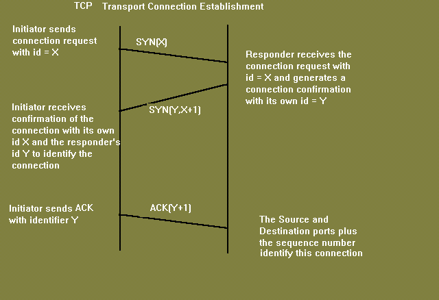 The "three-way handshake" is the procedure used to establish a connection. This procedure normally is initiated by one TCP and responded to by another TCP. The procedure also works if two TCP simultaneously initiate the procedure. When simultaneous attempt occurs, each TCP receives a "SYN" segment which carries no acknowledgment after it has sent a "SYN". Of course, the arrival of an old duplicate "SYN" segment can potentially make it appear, to the recipient, that a simultaneous connection initiation is in progress. Proper use of "reset" segments can disambiguate these cases.